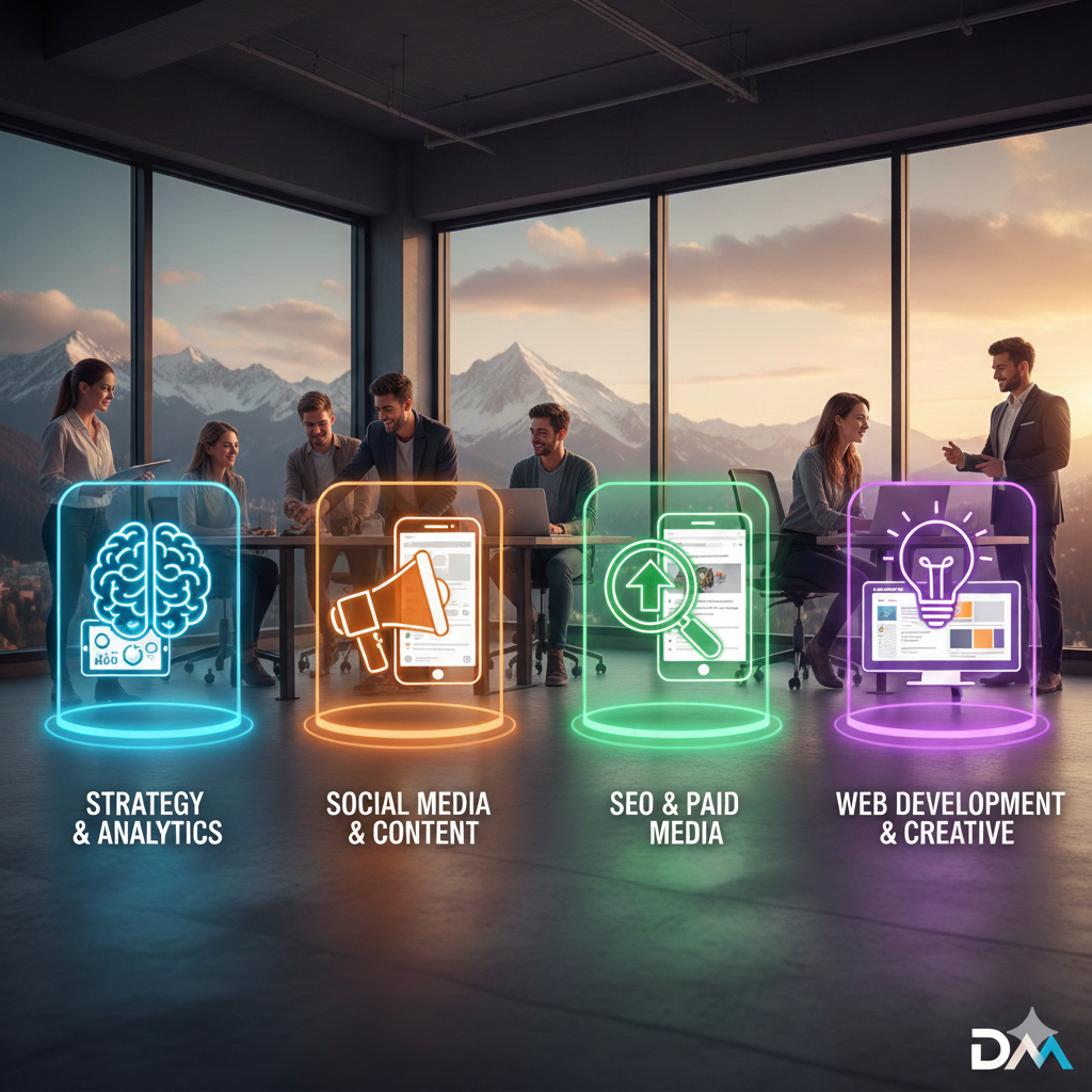 In a fast-changing digital landscape, we believe growth comes from understanding people, platforms, and purpose. Our team works closely with businesses to build strong online identities through SEO, social media marketing, paid advertising, content marketing, and high-converting websites. Every strategy we create is customized to match your brand goals and audience behavior.